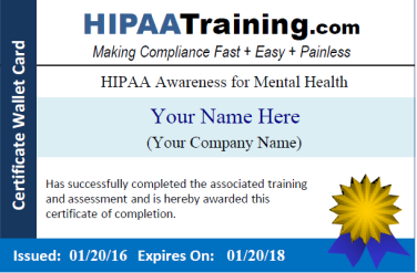 Print your HIPAA certification and wallet card immediately online upon successful completion of each course